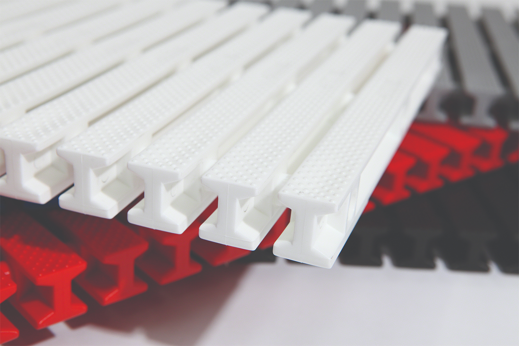 Transverse grating is an overflow swimming pool grating made from engineered plastic that provides excellent strength, durability and is also easy on feet and hands. Grating comes in standard widths of 350mm, 300mm, and 250mm and is available in four standard colours - white, blue, red and black. Custom grating sizes and colors are available at additional cost.