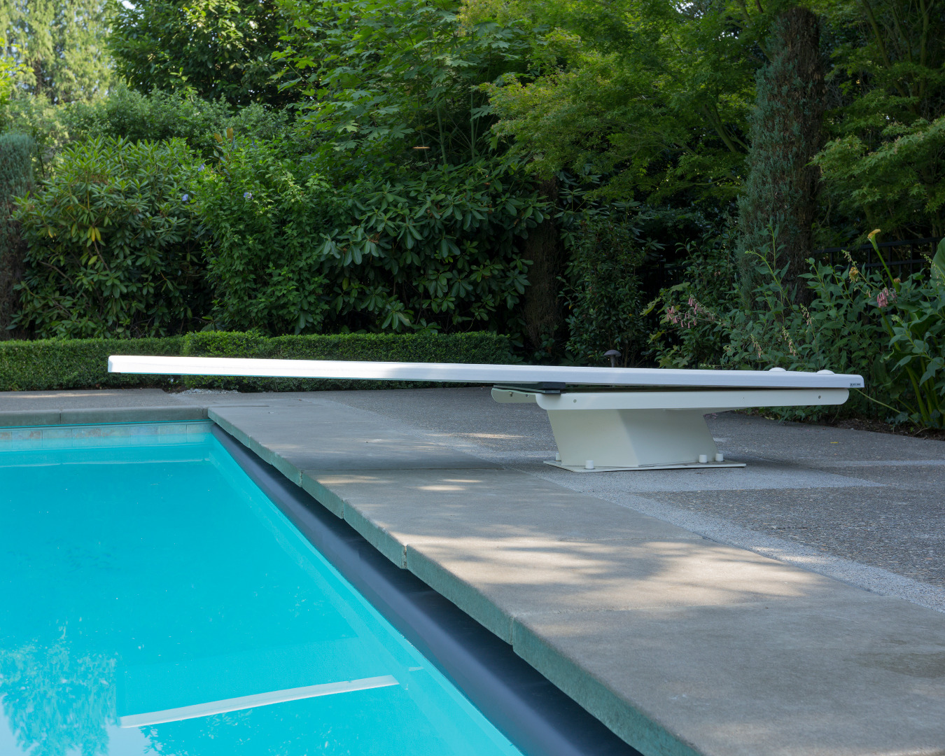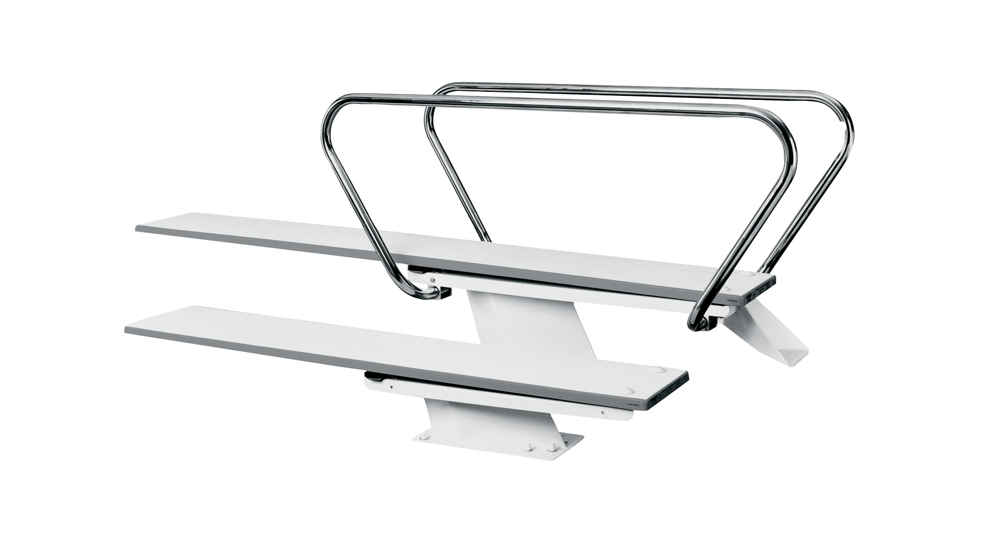Specifications: 1/2 Meter accommodates 8' and 10' boards. 3/4 Meter accommodates 10' and 12' boards. 1 Meter accommodates 10' and 12' boards. Diving boards are sold separately. Handrails are required for 3/4 and 1 Meter models and are sold separately.