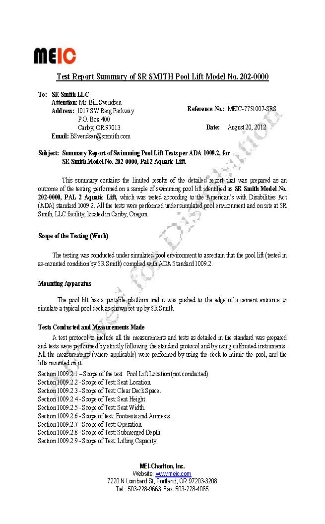 Independently tested and verified by a third-party to be compliant with the 1009.2 Pool Lifts of the ADA Guidelines.