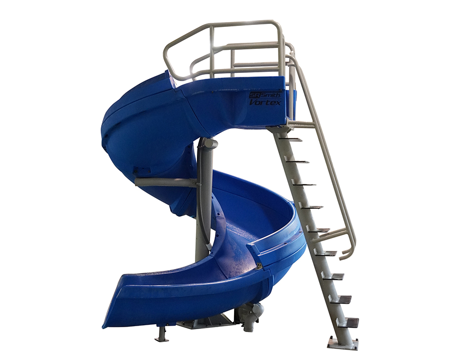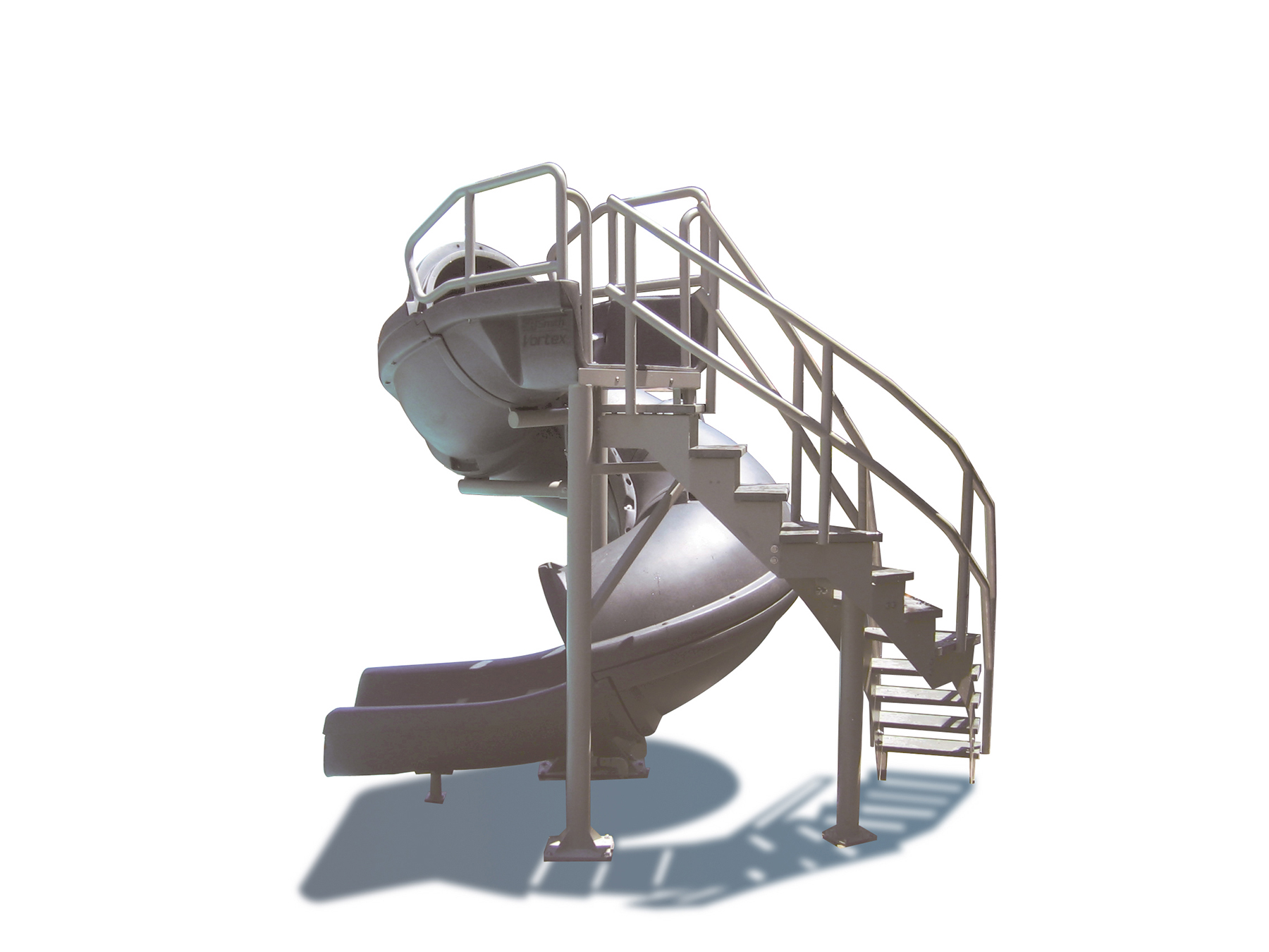 The Vortex pool slide is big time fun that's perfect for commercial or high-end residential applications. The Vortex is available with an open- or closed-flume slide, with a ladder or a spiral staircase - you decide! Standing at over 10 feet tall this CPSC compliant pool slide's high-volume water delivery system gives you up to 30 gallons of water per minute - now that's big time fun!